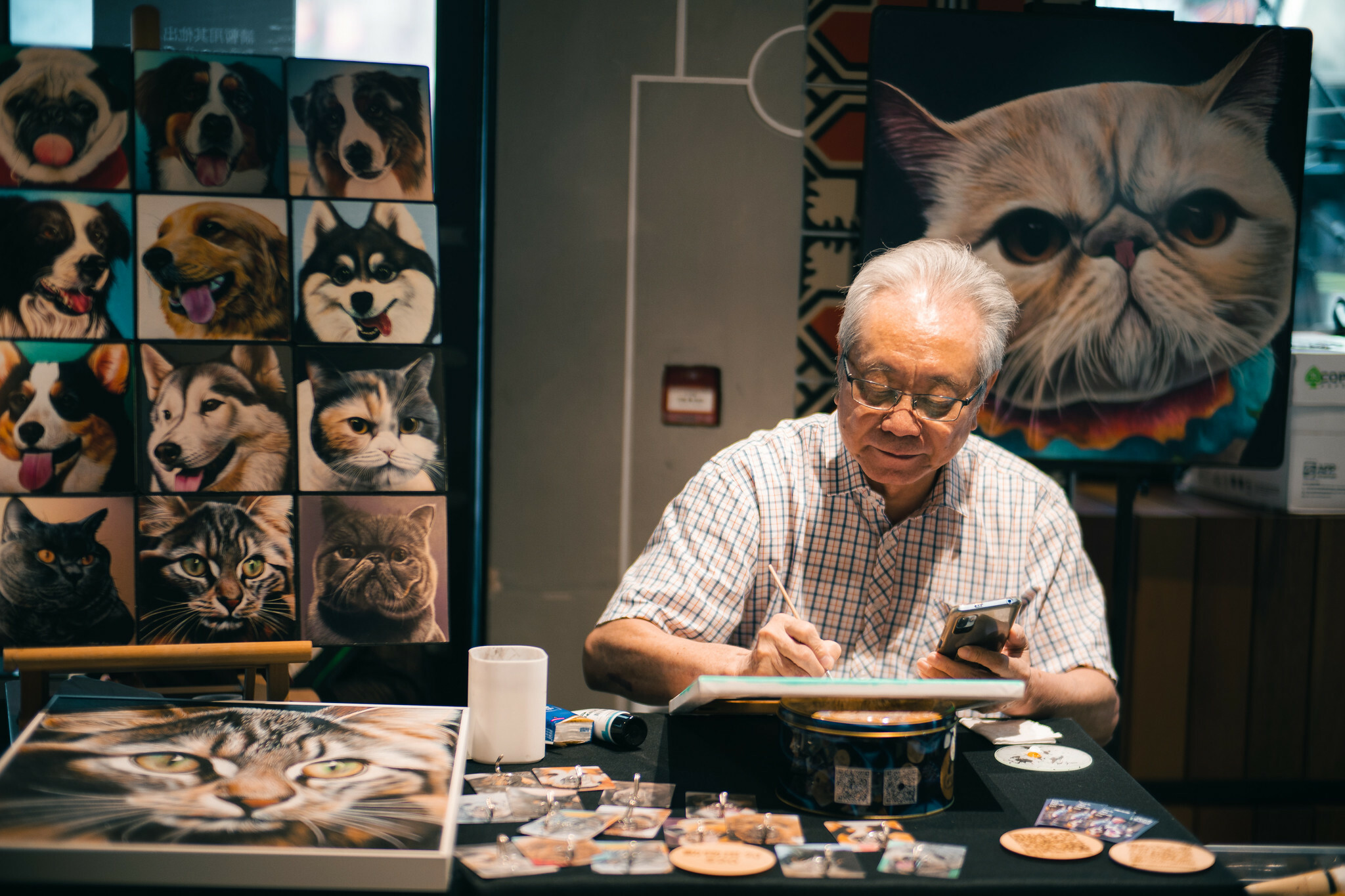 著名寵物肖像藝術家 Moon Sir 以手繪寵物油畫見稱,他筆下的寵物油畫大多花上數日至數週繪畫,每幅都栩栩如生,真得好像相片一樣!靠近一看,一筆一劃都絕不簡單。